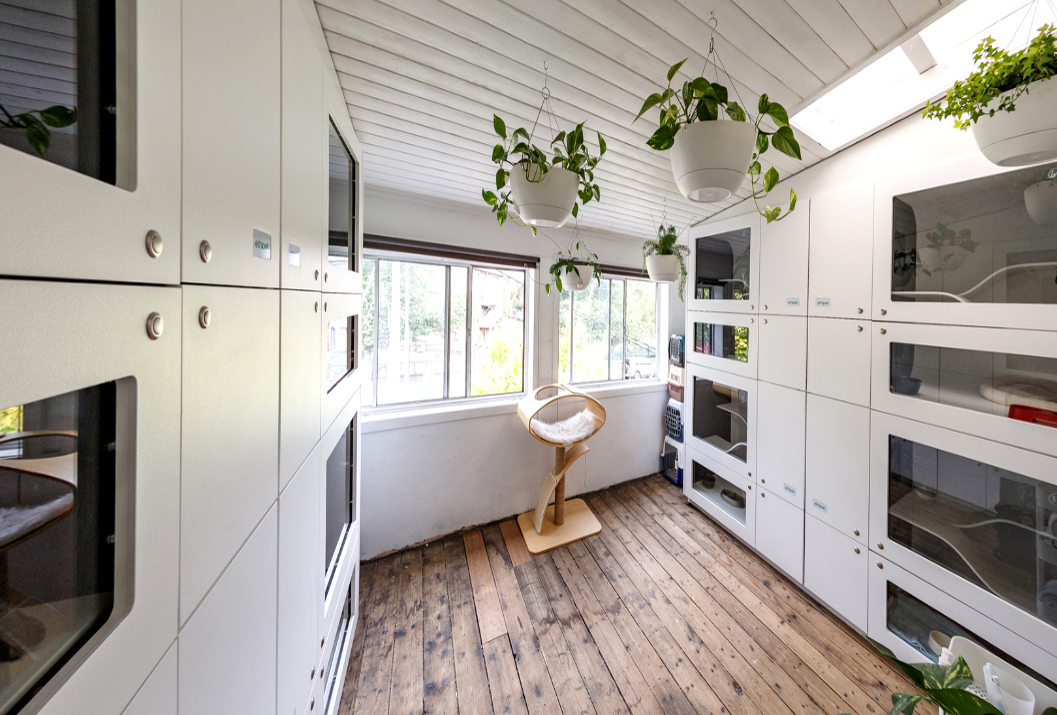 Whilst designing veterinary interiors, our designers were confronted with a sea of cold steel animal cages and being animal lovers ourselves we decided to put our design skills to work and create a more humane and ethical home for cats in care.